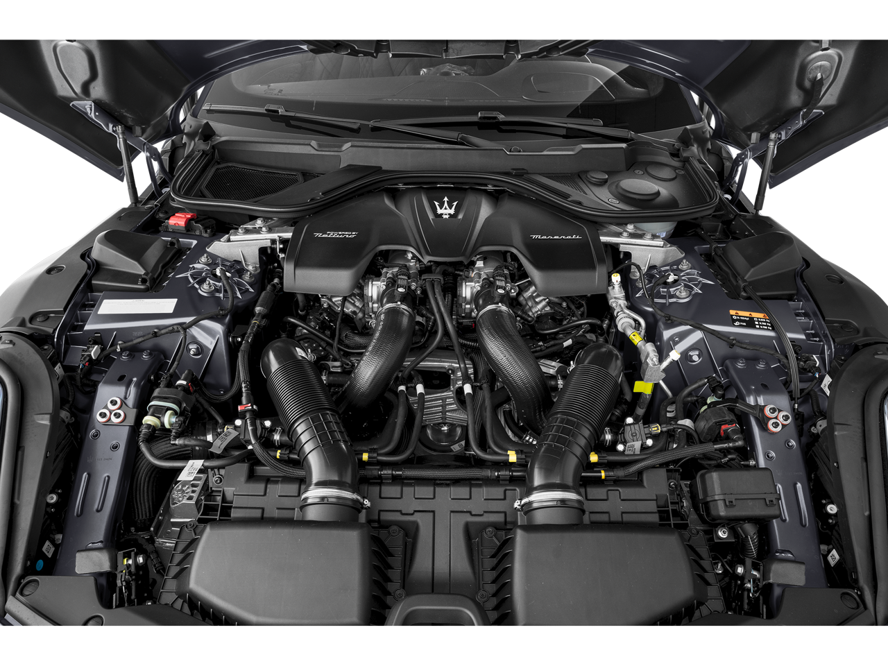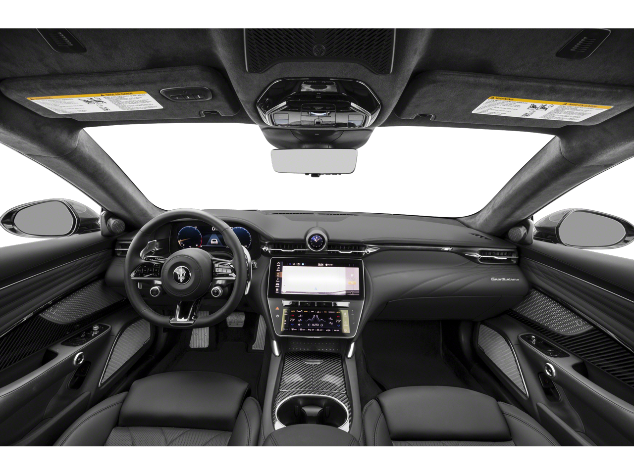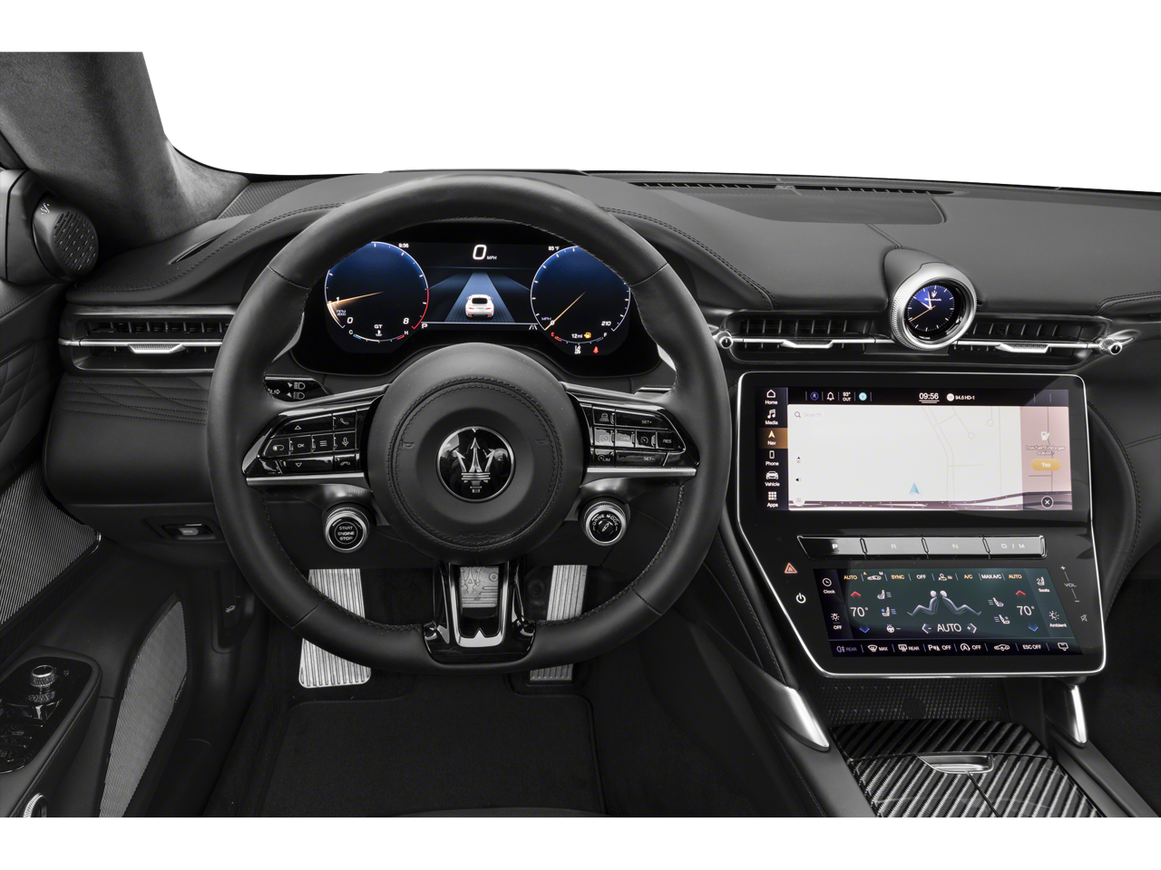 - Radio: Maserati Intelligent Assistant w/Navigation -inc: 12.3" upper touchscreen, 8.8" lower touchscreen, HD Radio, SiriusXM radio (1-year trial subscription), wired and wireless Apple CarPlay, wired and wireless Android Auto, Maserati Connected Services w/trial subscriptions, Alexa in-vehicle voice assistant, eCall and bCall w/trial subscriptions and 14 speaker Sonus Faber premium audio system including subwoofer